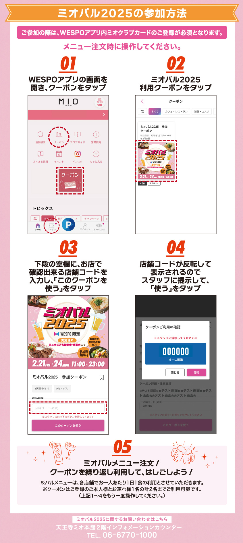 総勢80店舗が参加する「ミオバル2025」は、この期間だけの限定メニュー・限定価格が楽しめるお得なイベントです!(500円~1,000円のお得なメニューをご用意しております。)