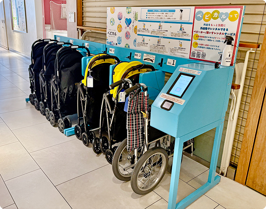 | 広い館内をショッピングするには、ベビーカーの利用がオススメ。 ベビカルWEBサイトよりご予約のうえ、予約画面の二次元バーコードを操作パネルにかざし、ベビーカーを取り出してご利用ください。 料金は、最初の1時間250円、以降30分100円、12時間最大1,500円となります。 「ベビカル」についてはこちら |