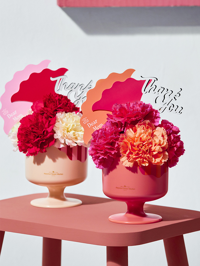 四季折々の花やグリーンが彩り豊かに揃う「青山フラワーマーケット」は、花を贈りたい方にうってつけ。切り花や鉢植え、枝ものと品揃えが充実し、鮮度◎で長く楽しめます。母の日当日は混み合うため、早めのご予約がおすすめです!