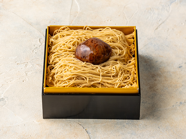 繊細な香りの丹波栗を使用したモンブランクリームが幾層にも折り重なるモンブラン。ふんわり軽いスポンジに丹波大納言小豆の餡と丹波栗が合わさり、口いっぱいに広がる素材の風味が格別です。お重を開けた瞬間の華やかさもギフトにぴったり。