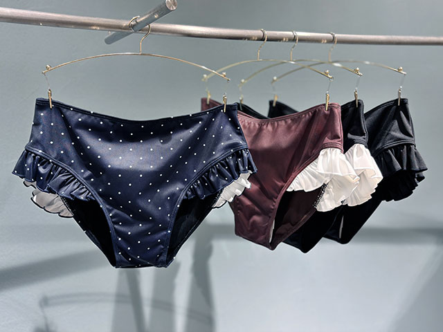 ショーツは別売りなので組み合わせは自由ですが、スタッフさんのイチオシはフリルをあしらったこちらのショーツ。トップスと合わせて統一感ある印象に仕上がります。