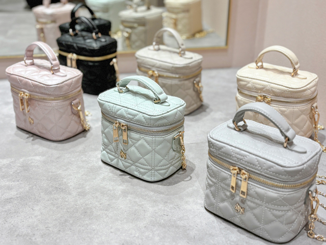 こちらのキルティングバッグは大人気バッグのミニサイズで、お洋服に合わせやすいサイズ感。6色展開なので、推しカラーをさりげなくコーデにプラスできます!キルティング部分に隠れた♡モチーフもキュート。