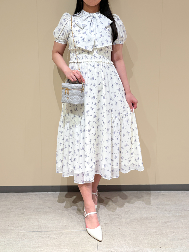 上質でクリーンな中に可愛さを取り入れた「アンミール」は、大人ガーリースタイルが魅力。コーデの主役におすすめのワンピースは、上品なフラワー柄に胸元のリボンがキュートです。ウエストギャザーでスタイルアップも演出してくれます♪