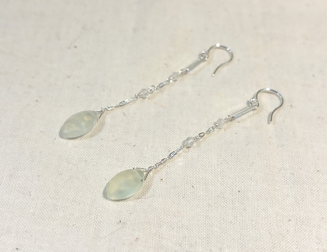 美しく、さわやかなグリーンが特徴のプレナイト。クリアな印象の水晶とシルバーのワントーンカラーが耳元を華やかにしてくれます。