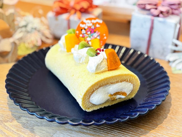 完成です!スタジオ内に設けられたフォトスポットで写真撮影もできました♪ちなみに、ロールケーキは持ち帰りOK。無料で体験できるうえ、手作りスイーツもおなかいっぱい食べられるなんてお得すぎます!