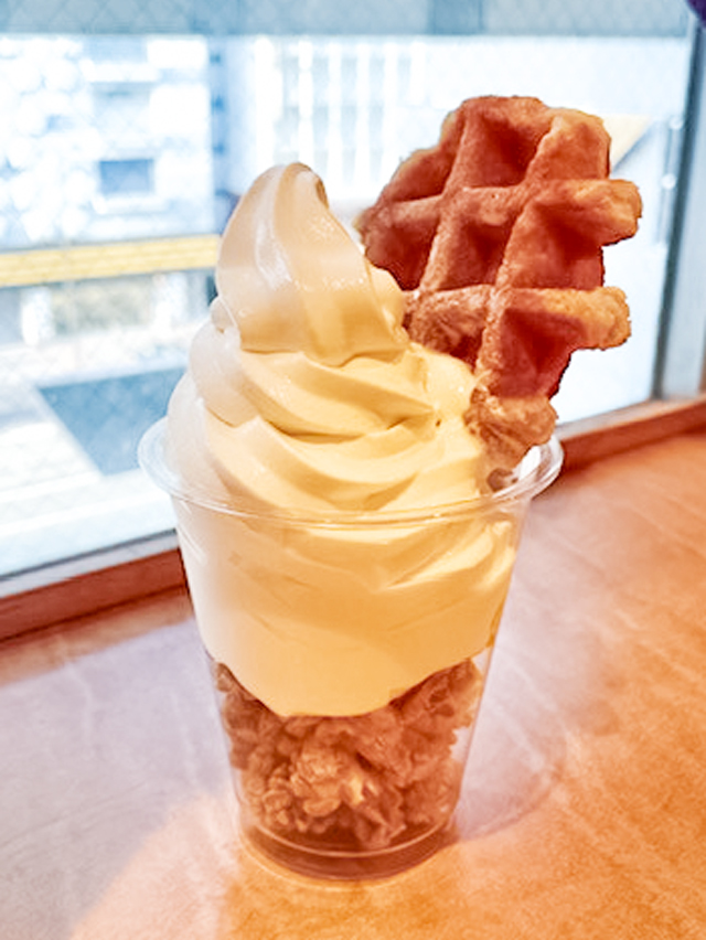 京都すずなり屋のベビーカステラをはじめ、ソフトクリームにワッフルをトッピングした「ワッフルソフトクリーム」など、独自のフードも楽しいです♪