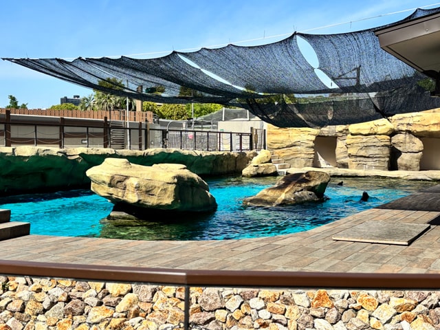 カリフォルニアの港町を模して作られた漁師小屋から観察すれば、異国情緒も味わえますね♪この日は岩の上でくつろいだり泳いだりするアシカにキュン♪