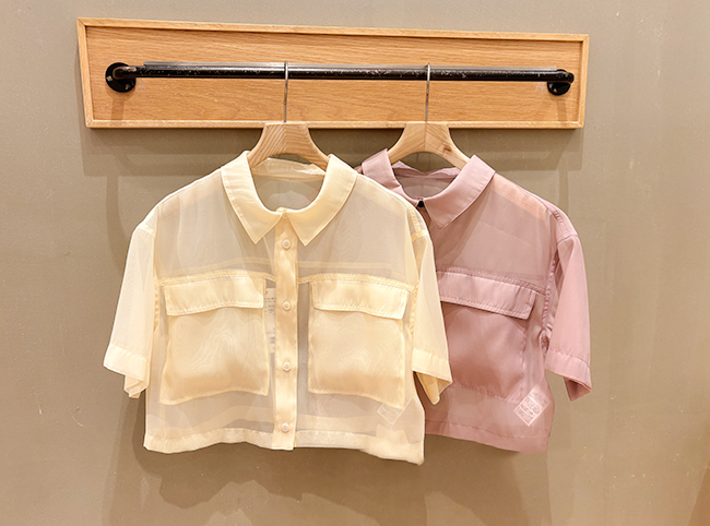 〈Ray BEAMS〉オリジナルのクロップドシャツは、オーガンジー素材の透け感が魅力。