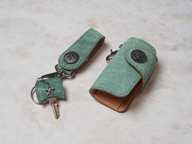 象革を使用した、存在感のあるキーアイテム!動物ごとに異なる革の質感を楽しめるのも魅力のひとつです。これからの季節にぴったりな、鮮やかで爽やかなカラー展開もポイント♪