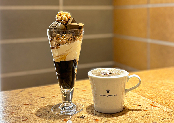 香ばしいほうじ茶の風味とチョコレートのコクを楽しめる“ほうじ茶生チョコレートパフェ”と“ほうじ茶チョコレートラテ”。ほろ苦いほうじ茶とやさしい甘さのチョコレートが調和した、甘さ控えめで大人の味わいをお楽しみいただけます。