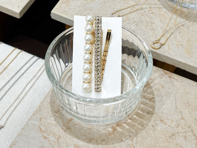 パールと輝く装飾が上品に映える、大人可愛いヘアアクセセット。程よい存在感でヘアアレンジに華やぎをプラスし、デイリーからオケージョンまで幅広く活躍します。