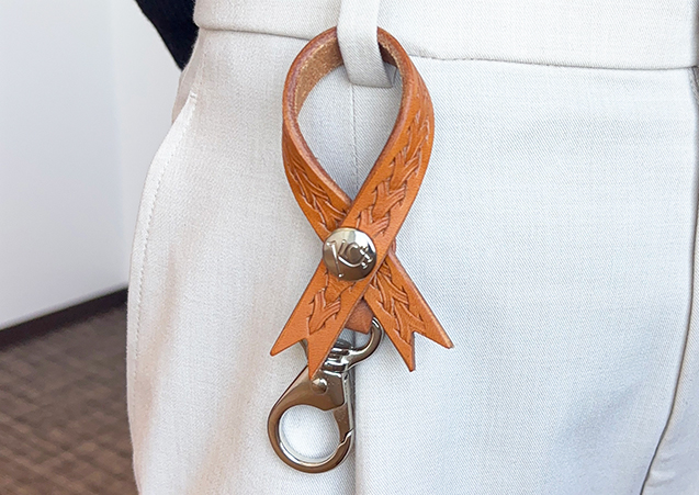 リボン型が印象的な「キーリング ボウ ハンドスタンプ」。バッグやジーンズのベルトループに添えるだけで、日常のスタイルに程よいアクセントをプラスします。シンプルながらも目を引くフォルムで、使い方は自由自在です。