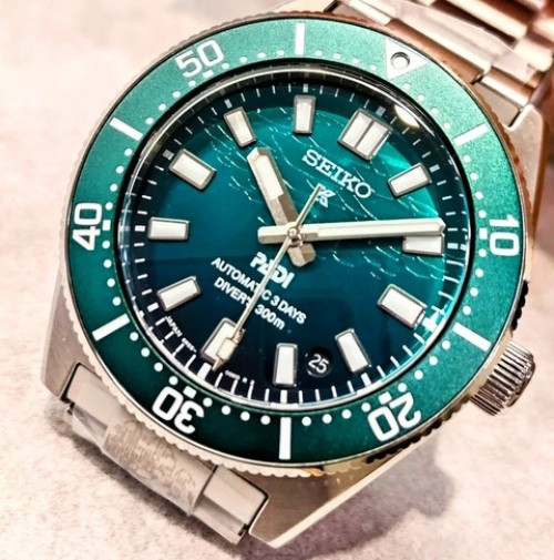 光の入り方でダイヤルがグラデーションして綺麗なグリーンカラーだと思います。