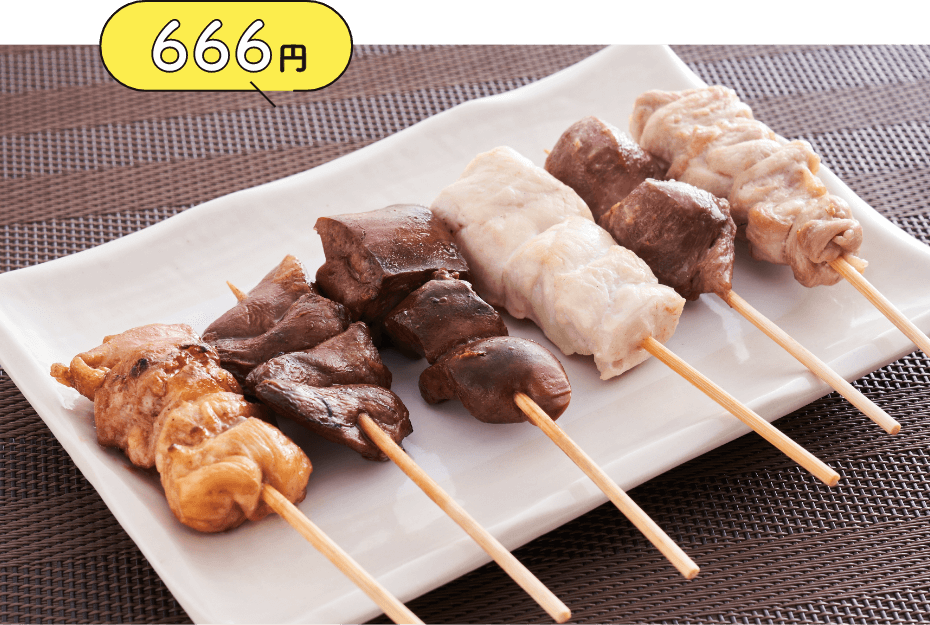 プラザ館60周年限定!焼鳥6種盛り合わせ 666円(1日16食限定)