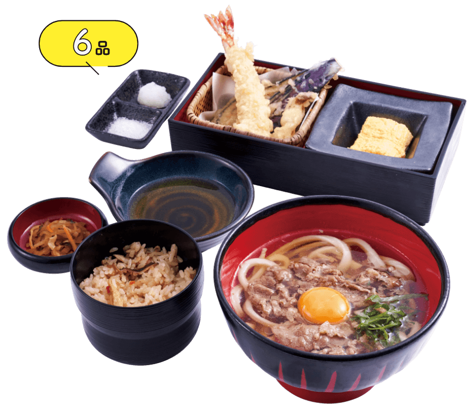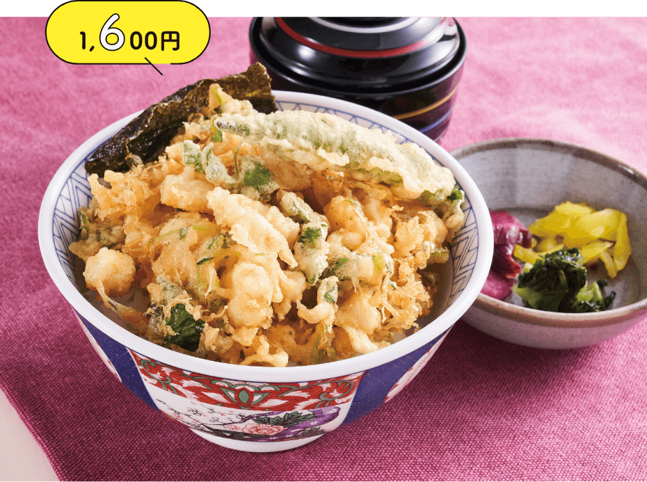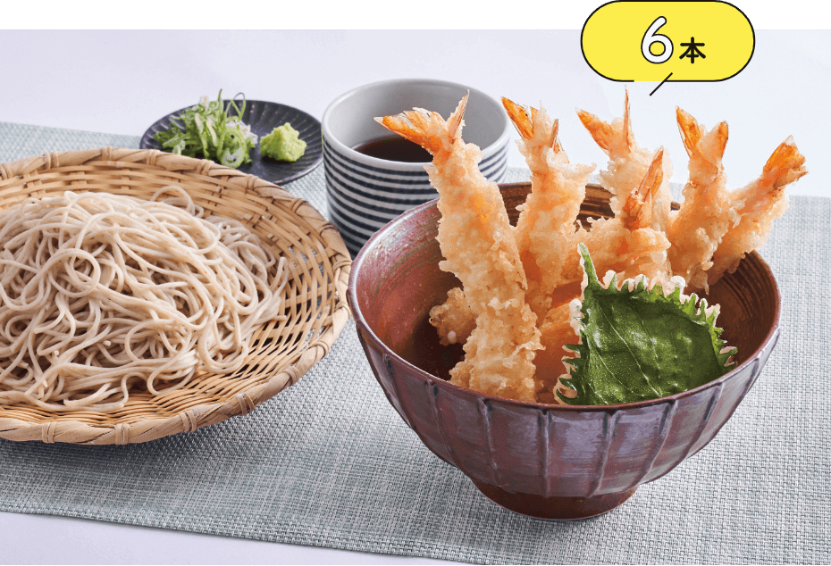 海老天6本天丼+ざる蕎麦のセット 732円(税抜価格666円)(1日60食限定)