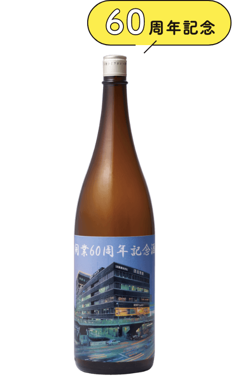 プラザ館60周年限定ラベルの日本酒を100本分ご用意。 720ml瓶のお持ち帰りも販売。
