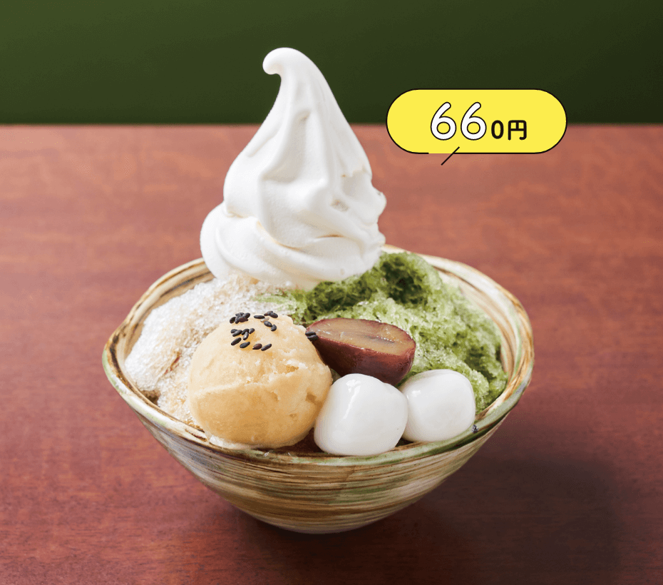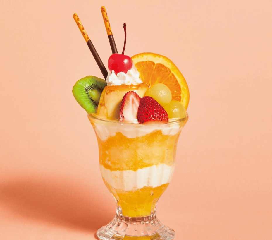パフェとかき氷を掛け合わせた新感覚スイーツ。 大阪らしいプリンアラモードとミックスジュースで個性溢れるパフェ。