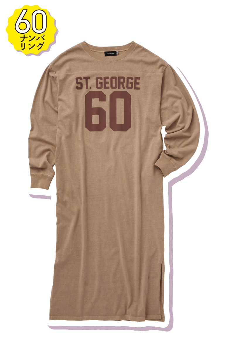 プラザ館60周年を祝い、別注カレッジワンピースを限定カラーでご用意。リラックスムードが漂う落ち感とヴィンテージライクな素材でさらっと着こなして。