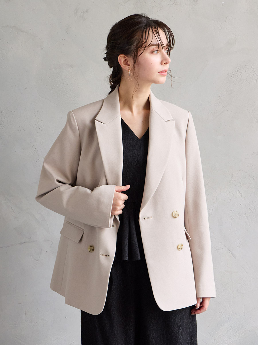 クラッチバッグとジャケットを合わせると大人っぽく、