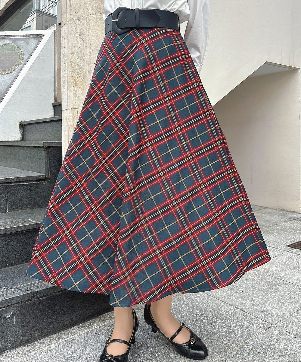存在感あるチェックスカートでレトロさも忘れずに♪