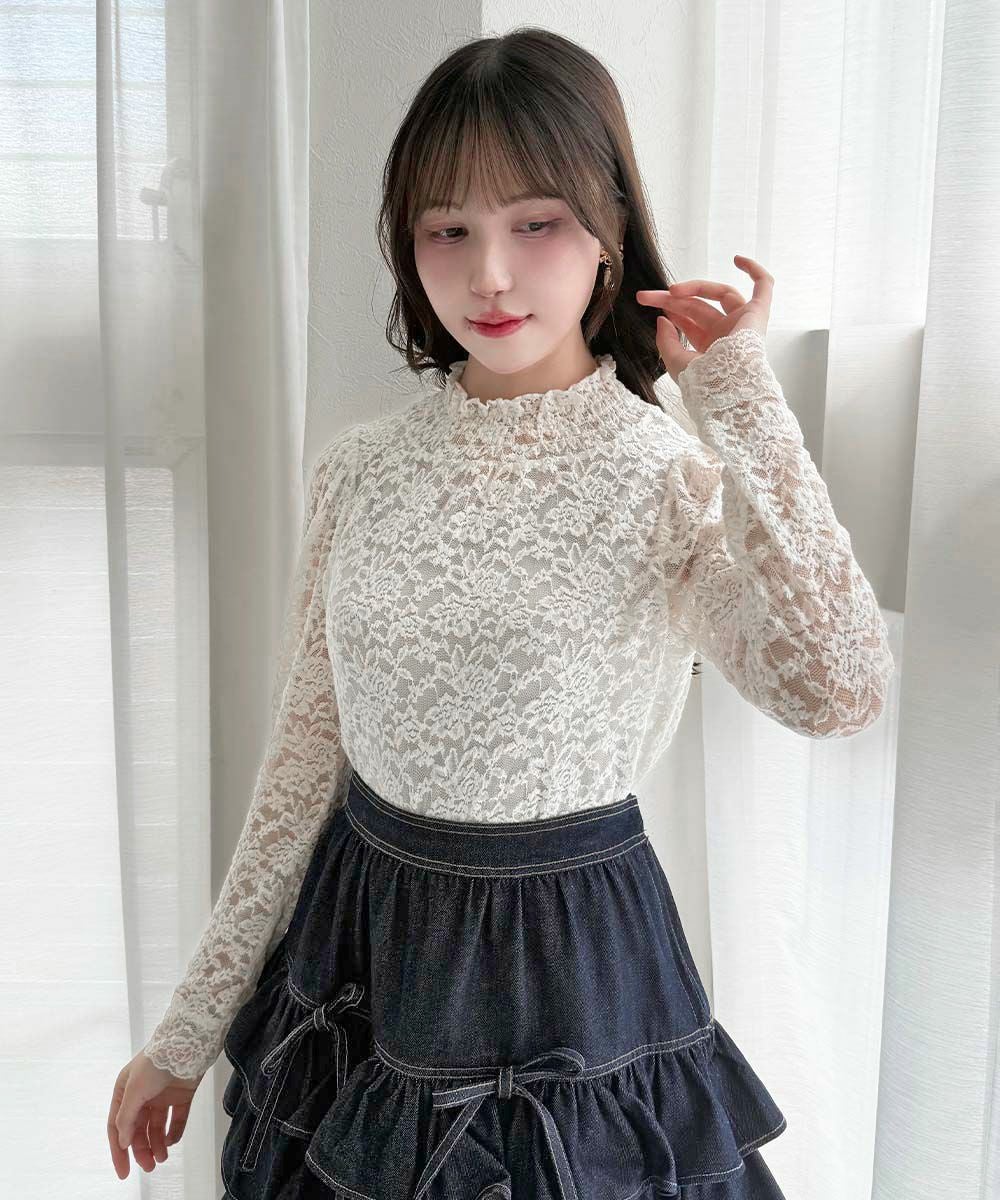 ローズレース長袖トップス/an another angelus [00BI02j001]