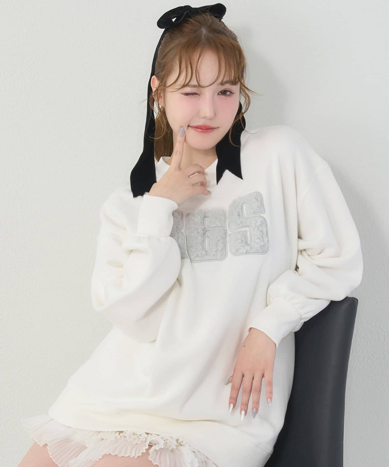 胸元のロゴがプードルみたいなクルクルボリューミーな毛足でポイントになります🐩