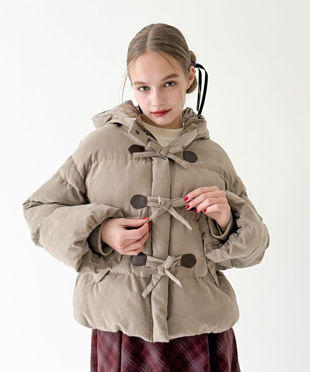 前はリボンデザインなのでダウンでも可愛い印象で着れるのが◎