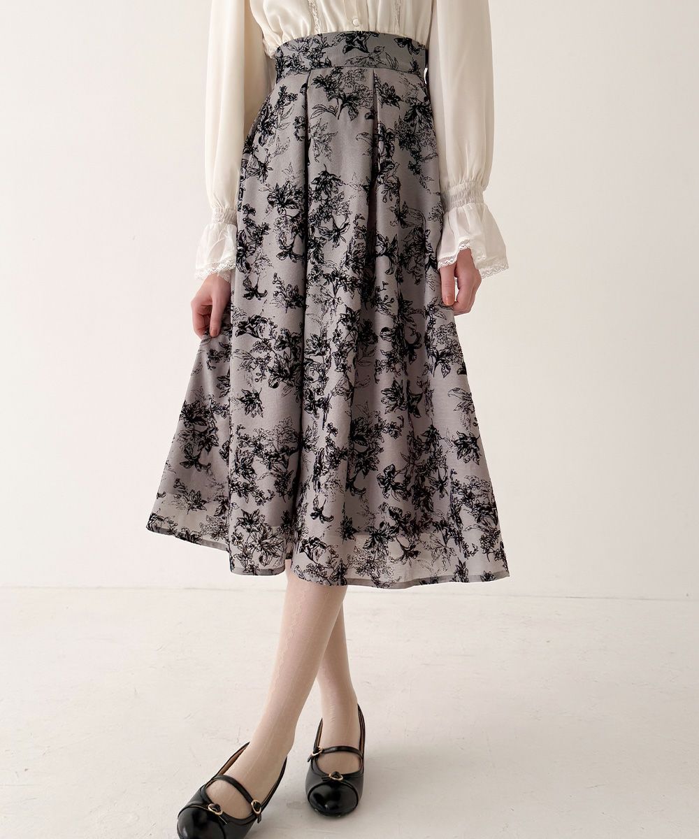 フラワーフロッキープリントタックスカート/an another angelus [56BG02p010]