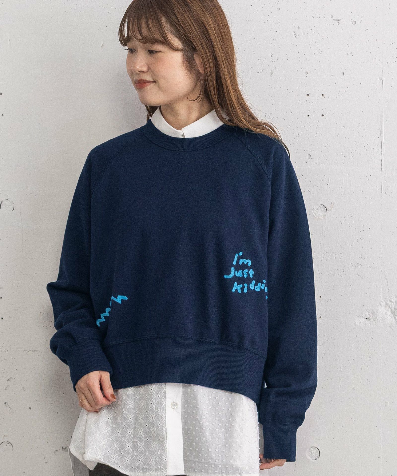 チェーンステッチで刺繍した手描きタッチのロゴがポイントな裏毛のスウェットです!