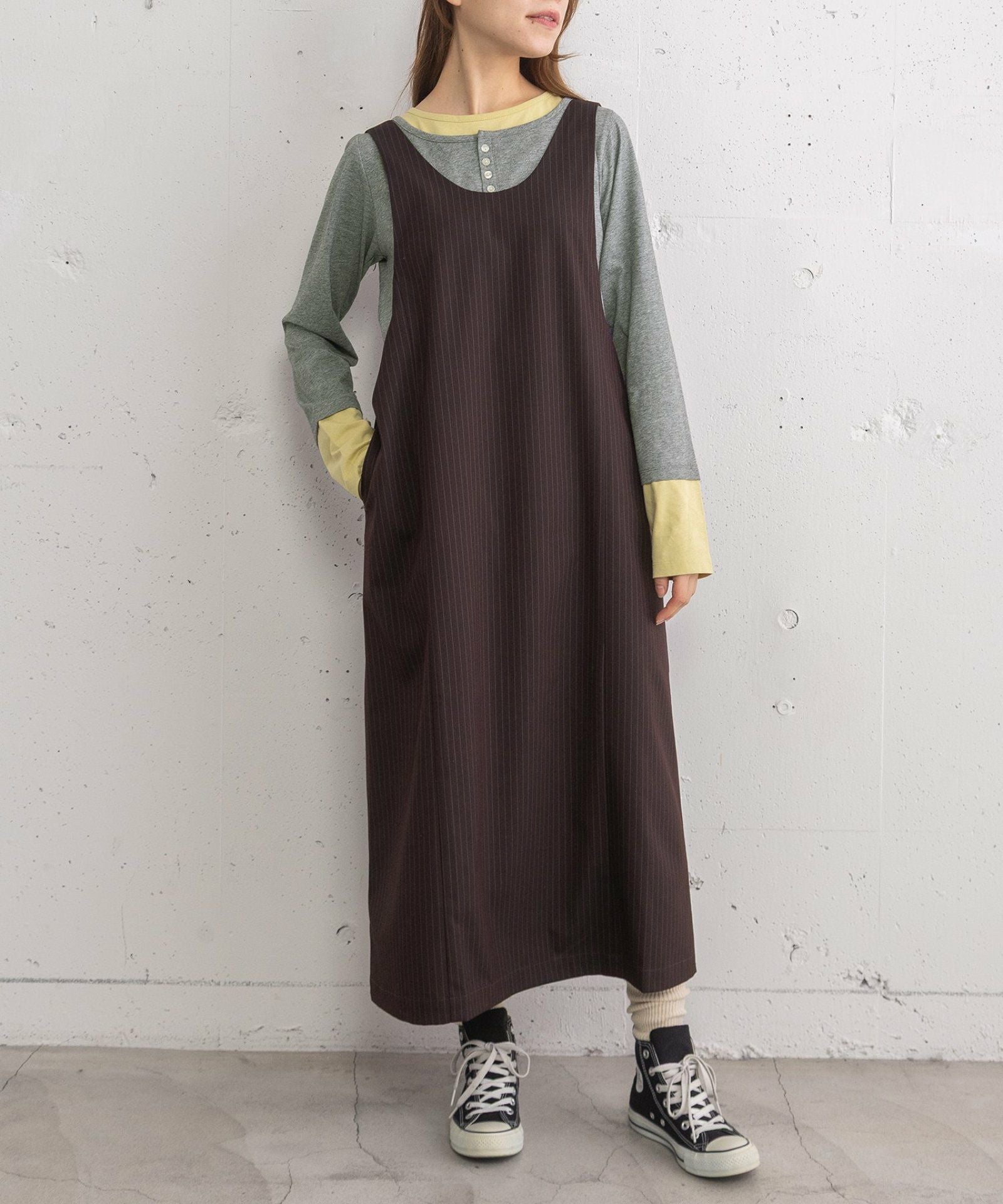 きれいめ素材で仕立てたジャンパースカートをシンプルに着てみました。