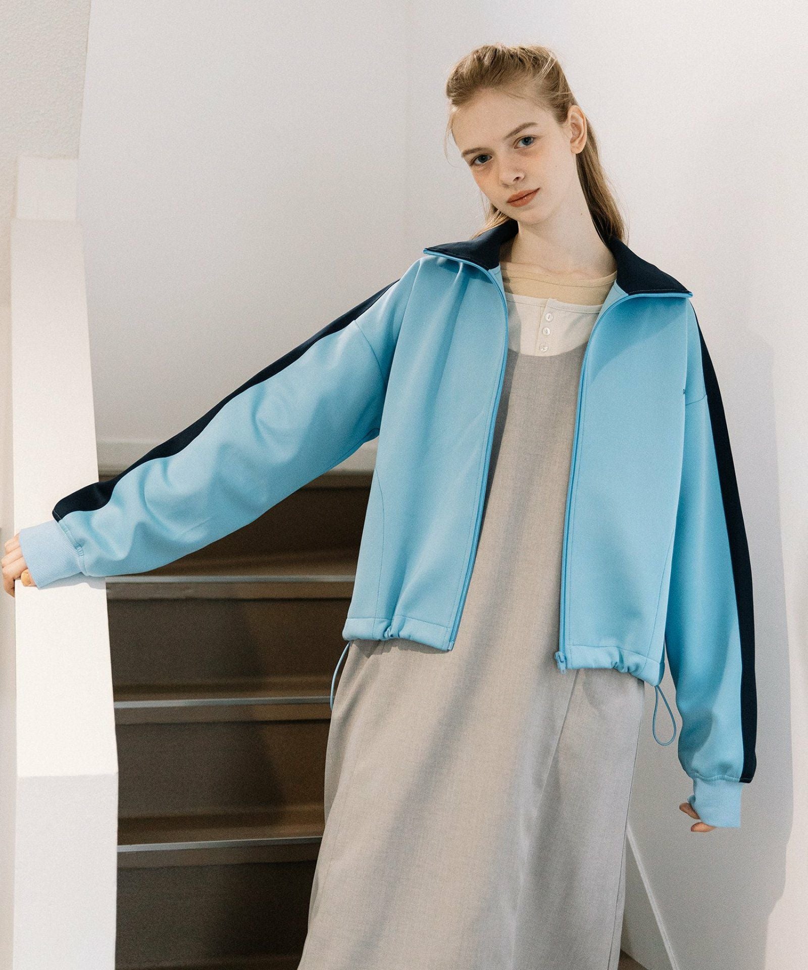 羽織るだけでトレンド感のあるスタイリングが楽しめます◎衿と袖に配色ラインを施し、着映えするデザインに仕上げました。肩を落とし、身幅にゆとりを持たせたラフに羽織れるサイズ感。伸縮性のあるジャージー素材で、着心地の良さも魅力です。裾にはゴム紐を通しているので、シルエットの調節が可能。さりげなくあしらったpddのロゴ刺繍もポイントに。クロップド丈で気軽にコーデに取り入れやすく、ストリートスタイルや古着ミックスコーデにもおすすめです。