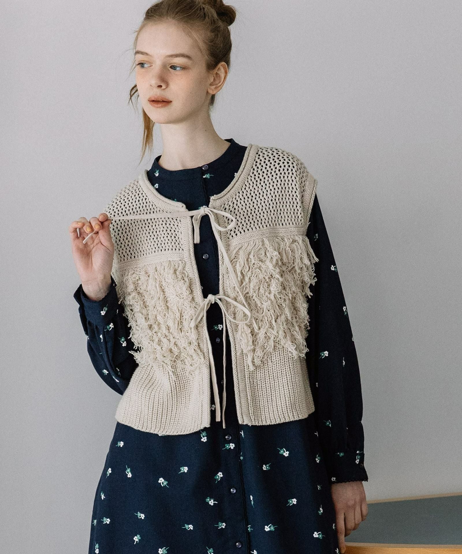 プードルの毛のようなループ編みが、表情豊かなニットベスト。