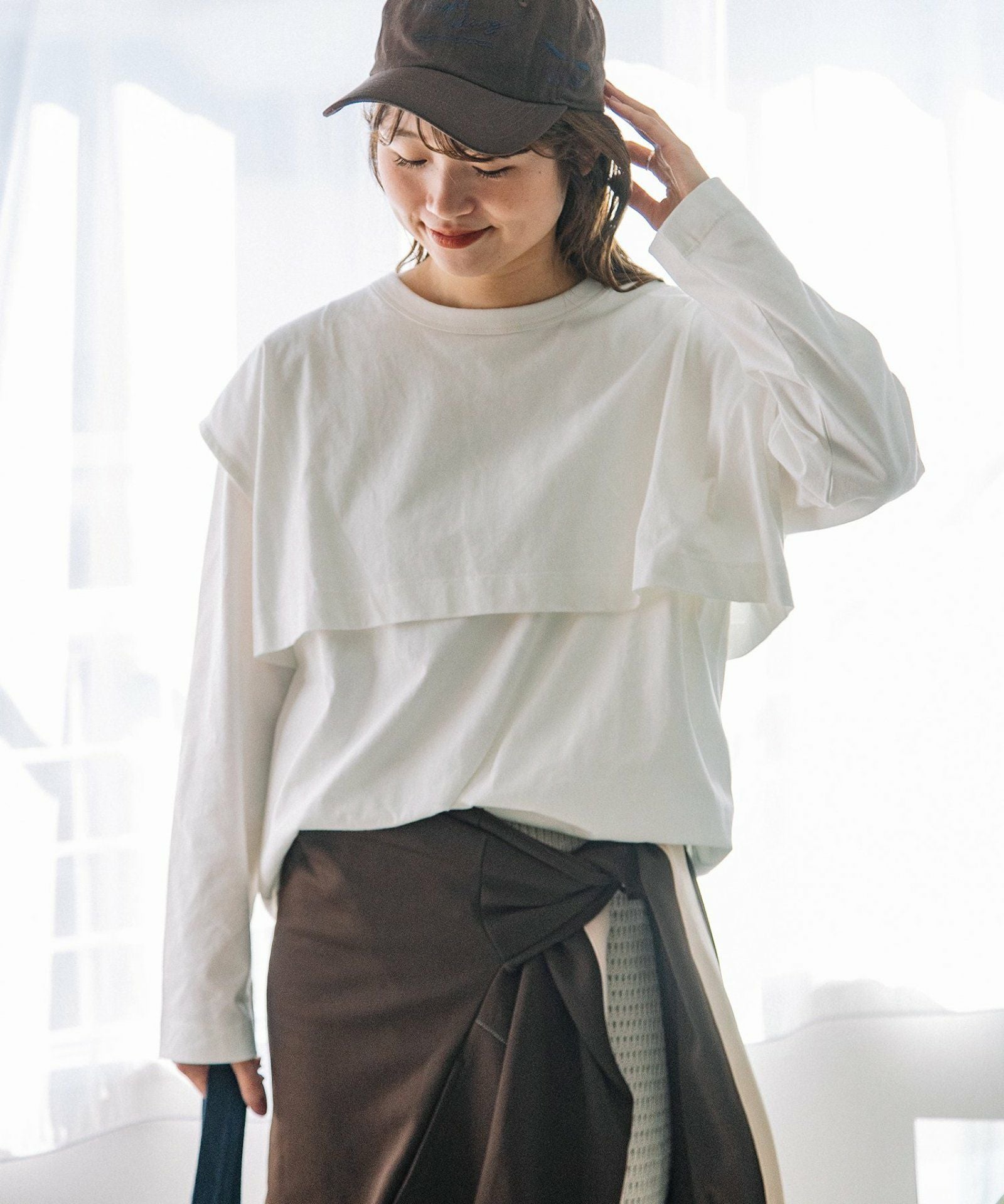 タックインすると、ショート丈トップスを重ねたように見えるデザインもポイントです◎