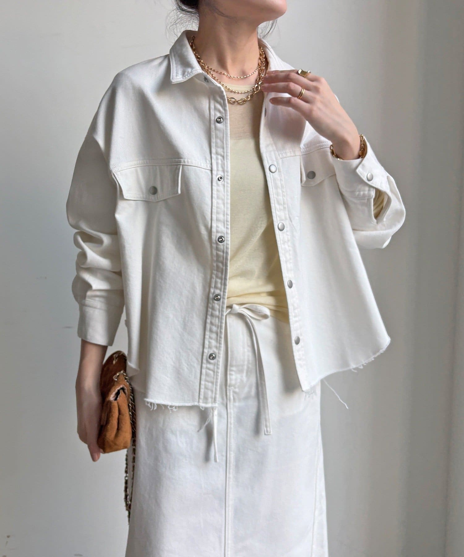 【セットアップ可能】デニムショートシャツ