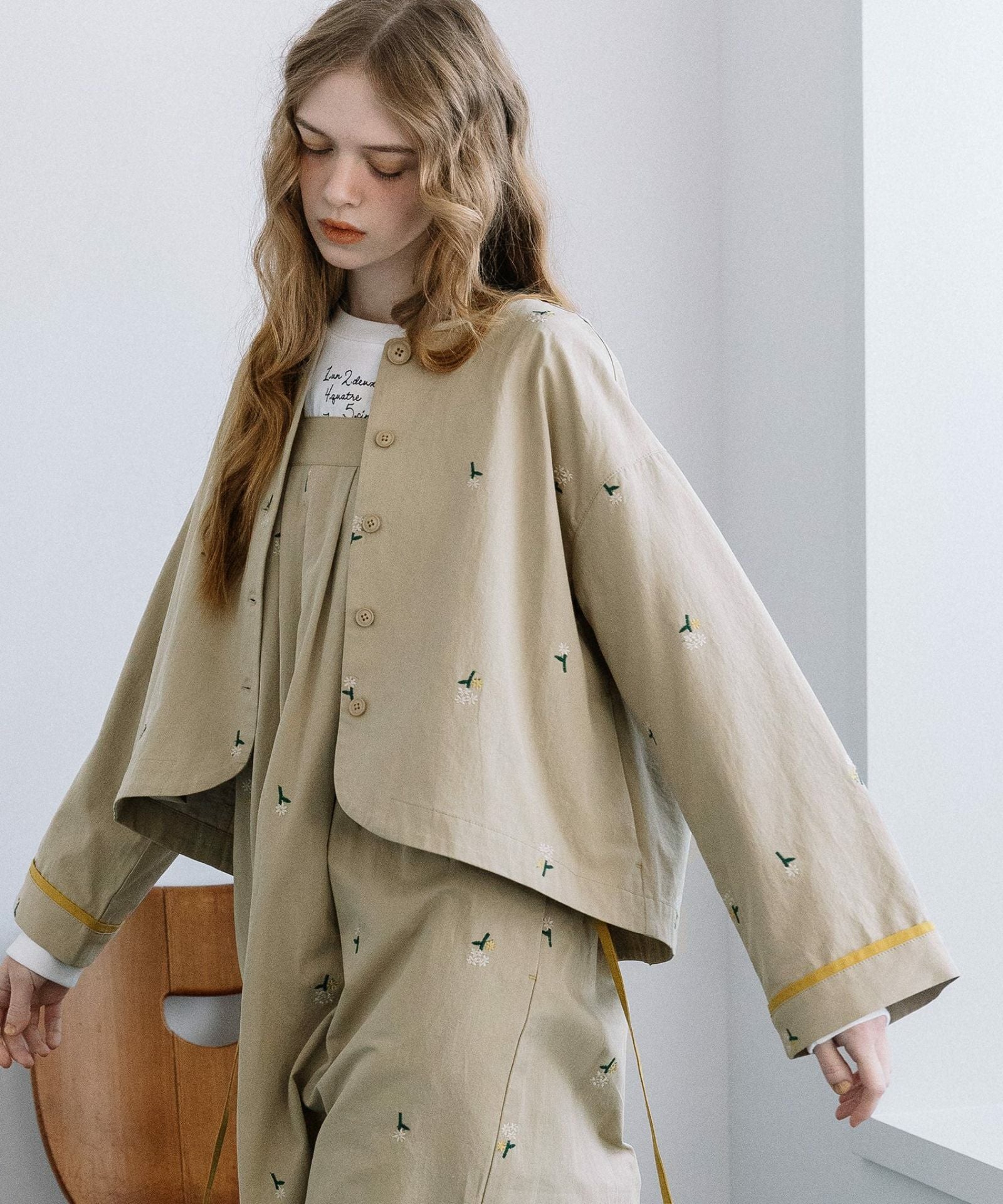 クロップド丈で中にロング丈のボトムスやワンピースなどにも合わせやすいです☝︎