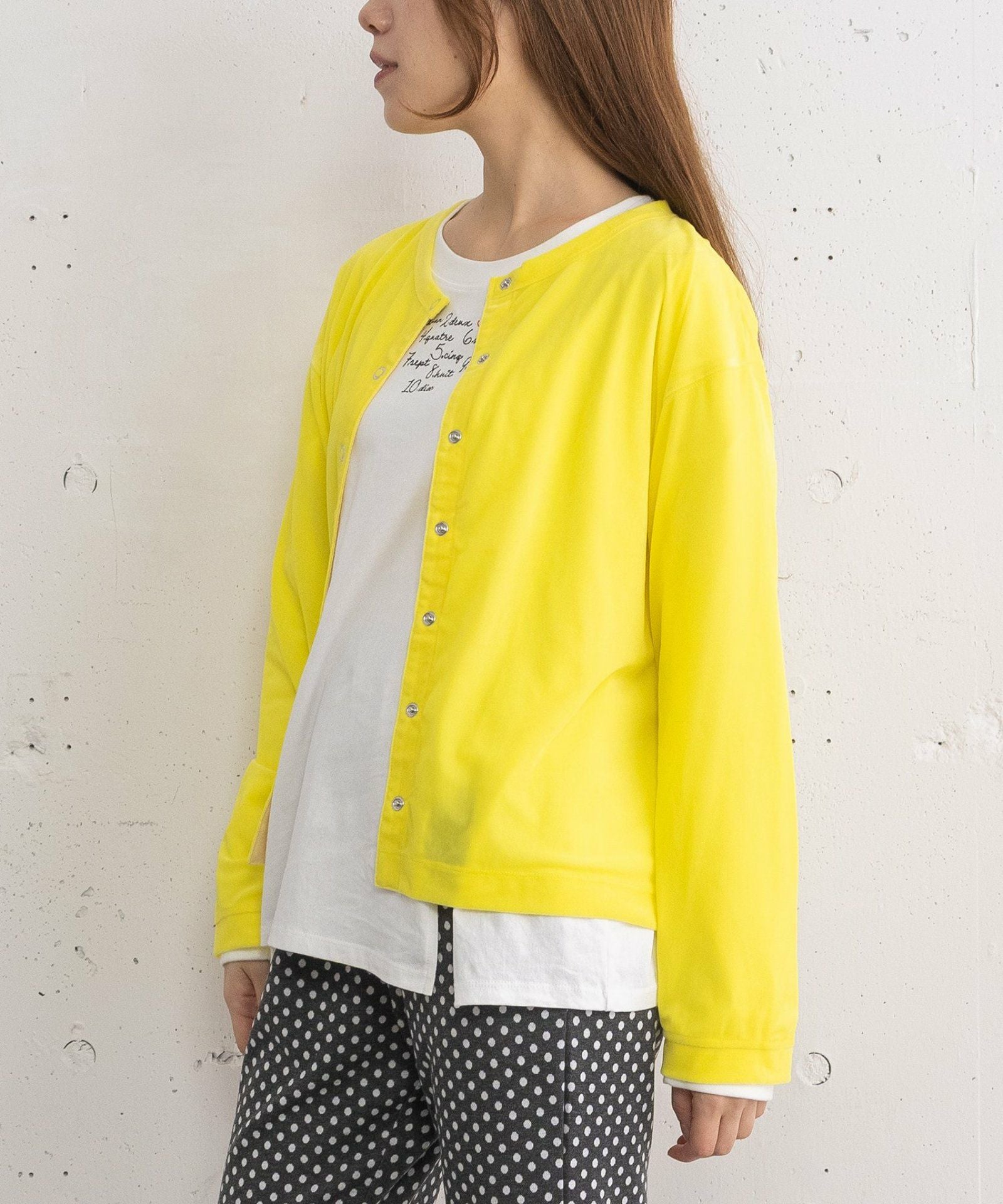 着用の鮮やかなイエローはコーデの差し色にも!