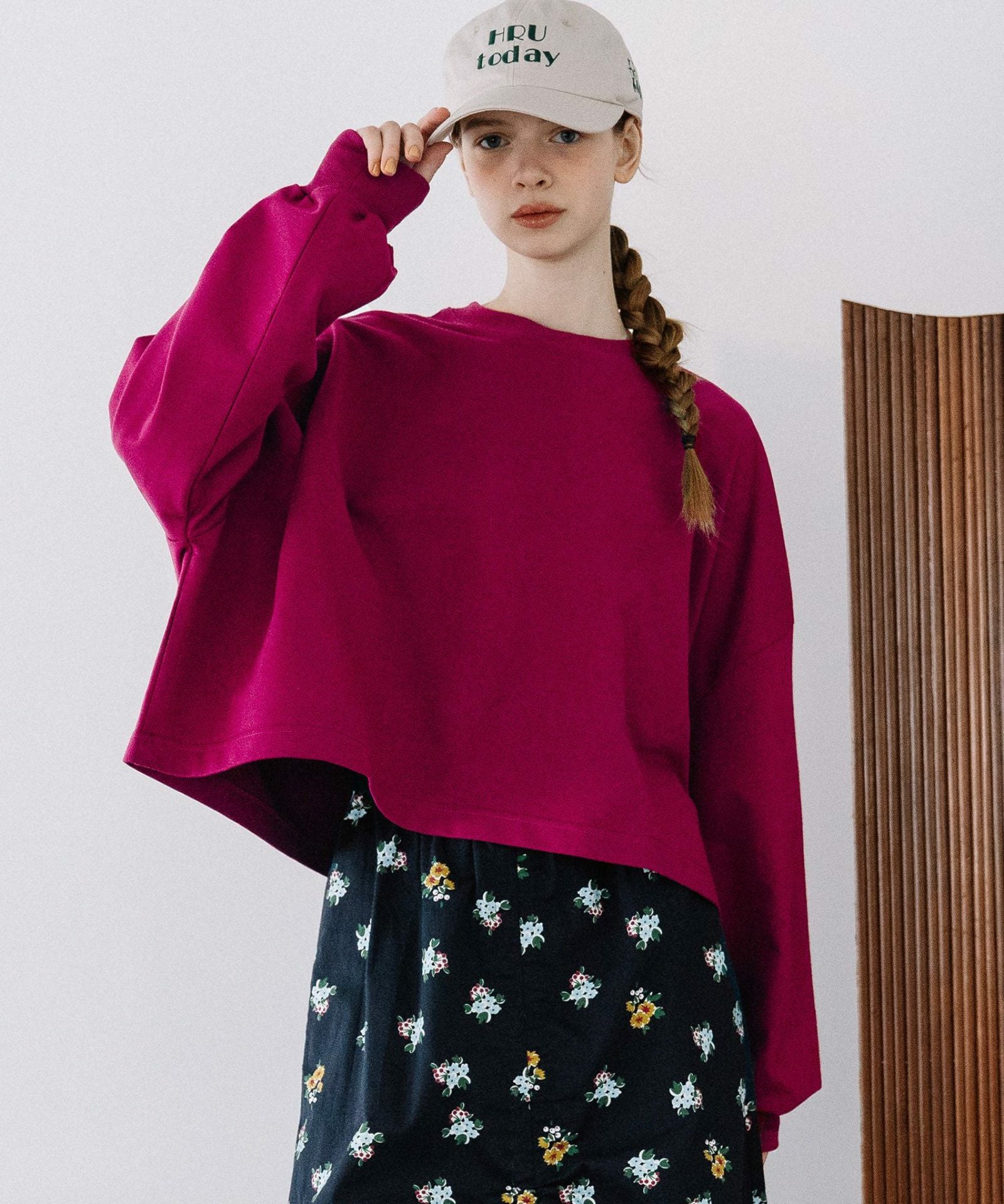 ボリューム感のあるお袖とショート丈の組み合わせがシンプルながらも可愛い♡