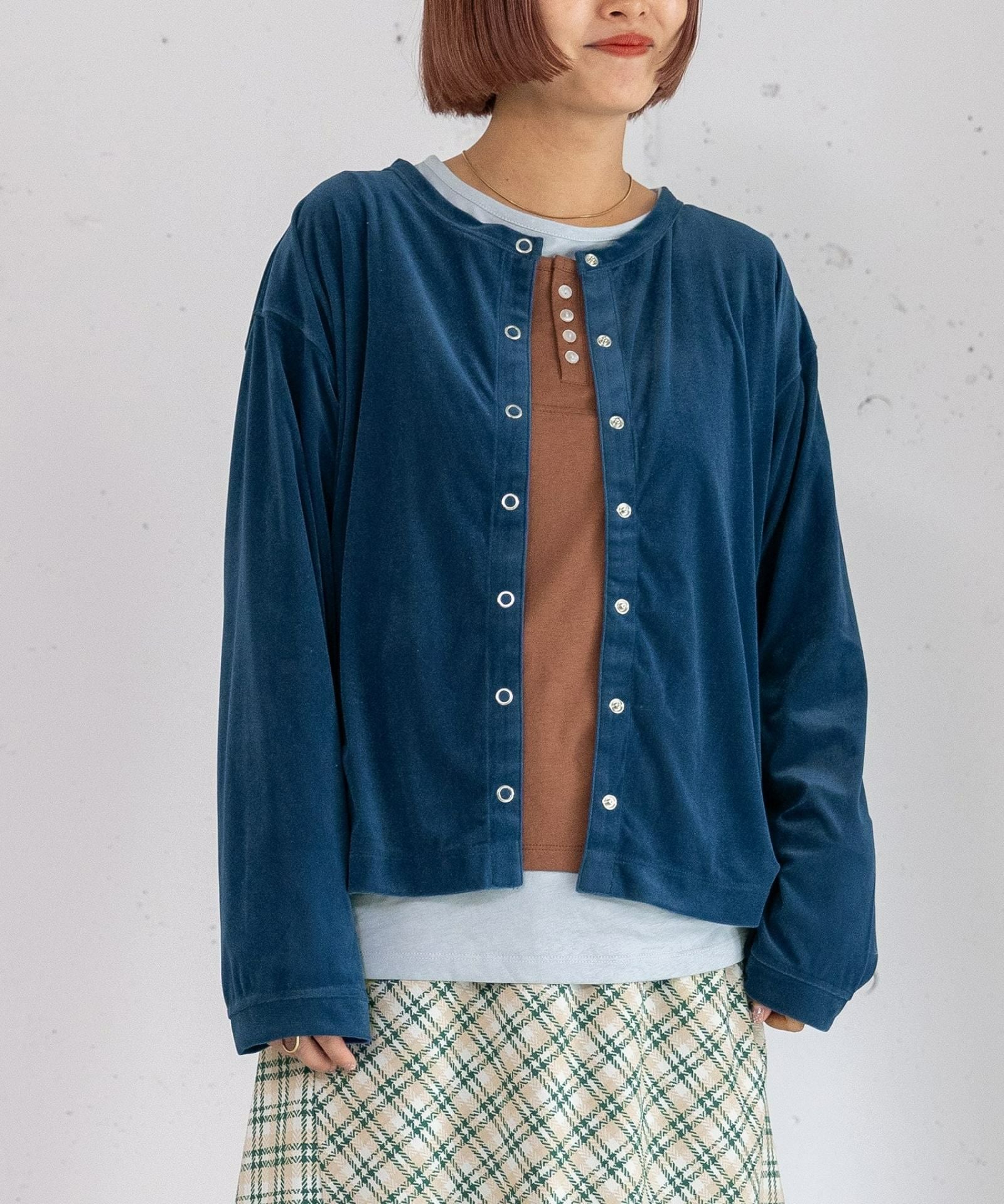 シアー感のあるカットソーのベロア素材を使用したカーディガンです!