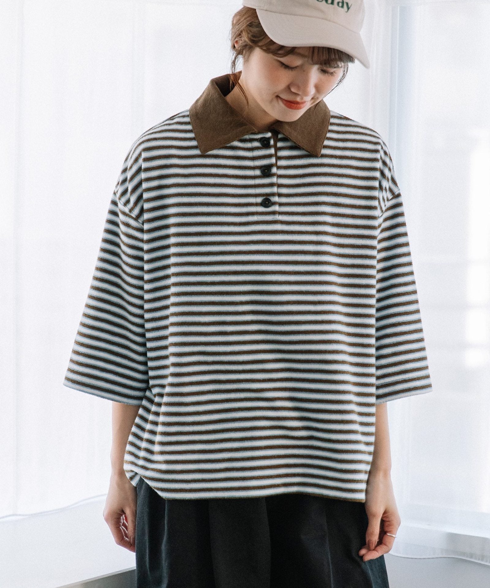 トレンド感のあるラガーシャツのようなデザインのトップスです。