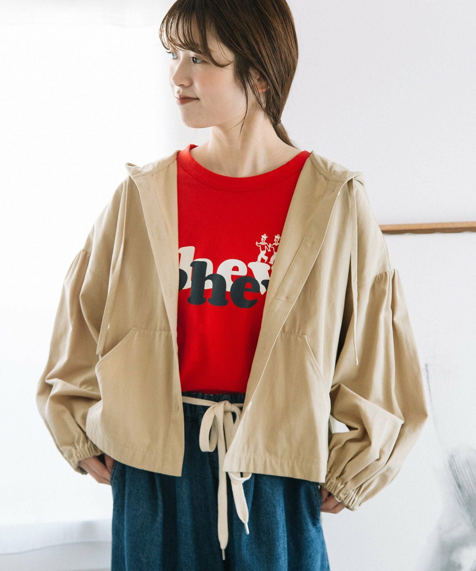 ボリューム感のある袖は袖口ゴムで捲りやすく夏まで長く使えます☝︎