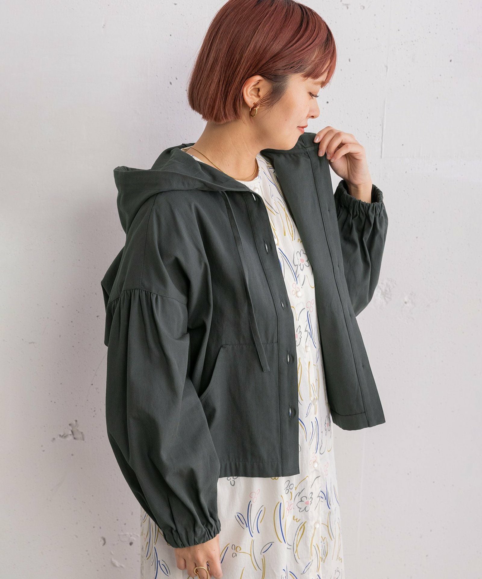 甘撚りのコットン素材でナチュラルな風合いが魅力のフーディブルゾン。