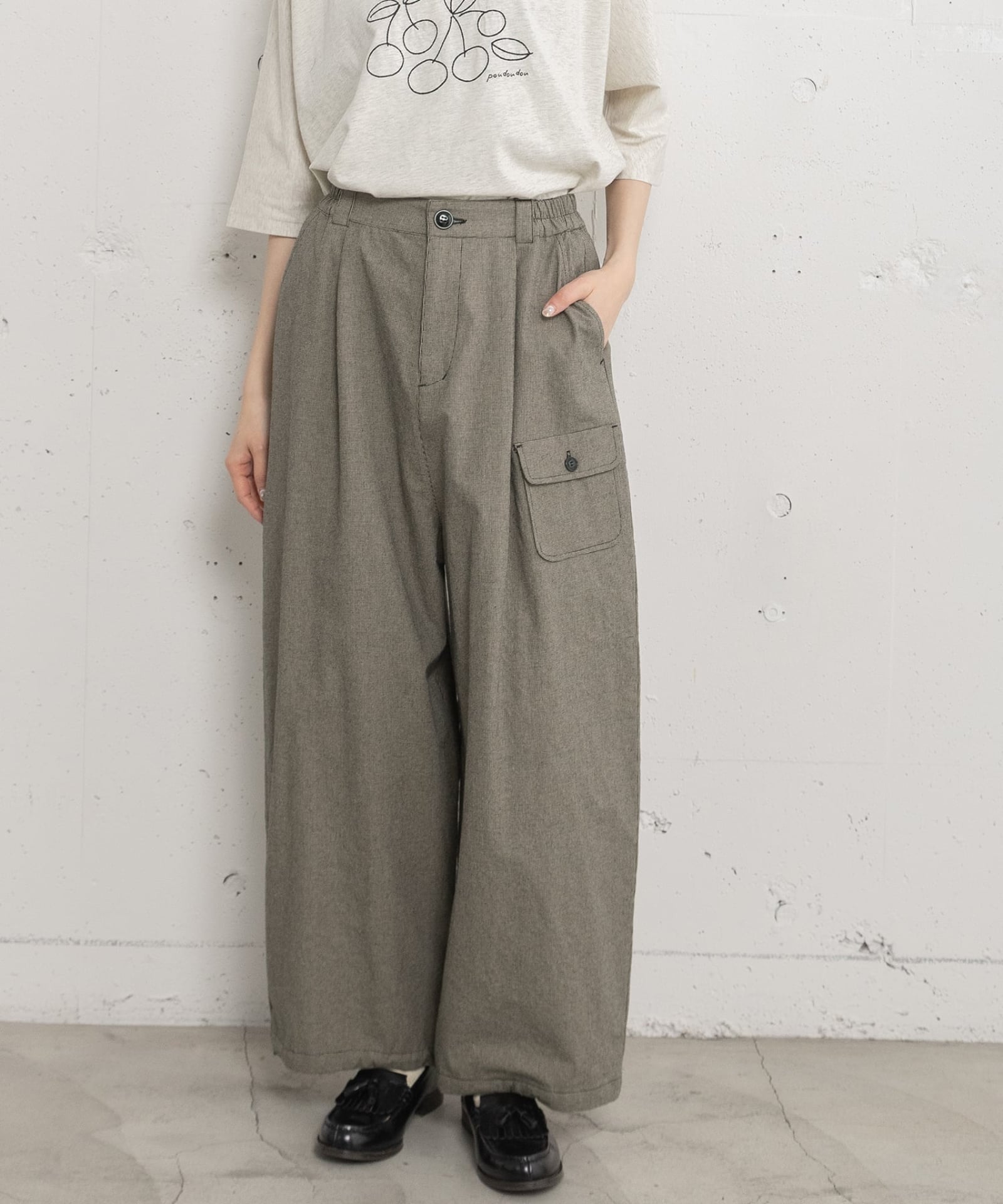 フロントのタックと脇のカーブで丸みのあるシルエットを描いたカーゴパンツでセットアップで着てみました!