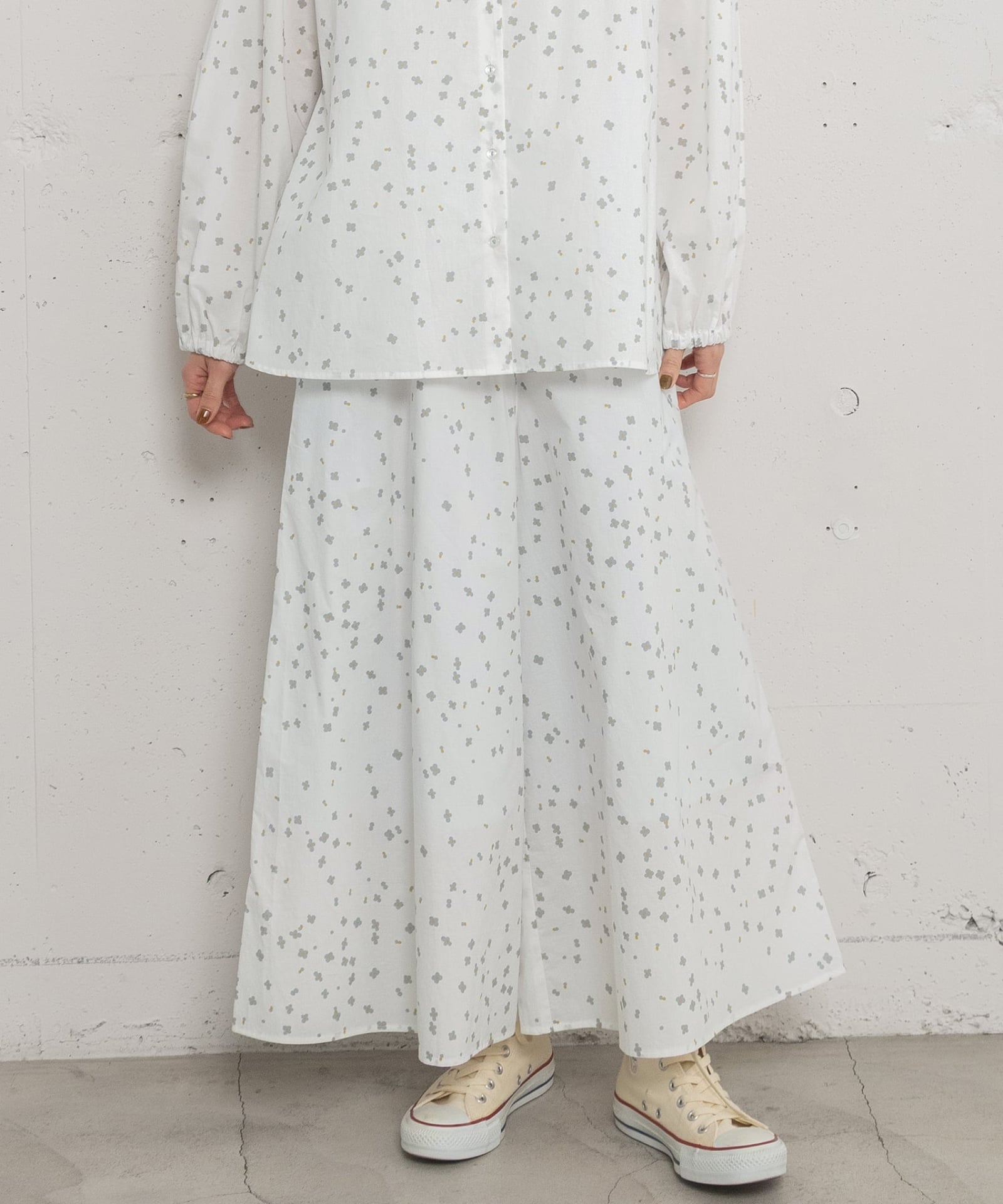 花柄とドットを散りばめたオリジナルプリントが目を惹くキュロットパンツ。