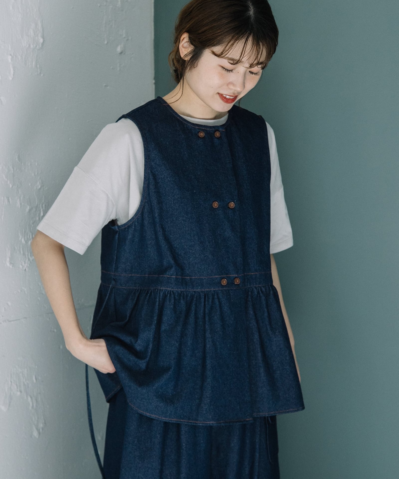 ウエストちょうどくらいで切り替えになっているので、ワイドパンツやスカートでもバランスよく合わせられます☝︎