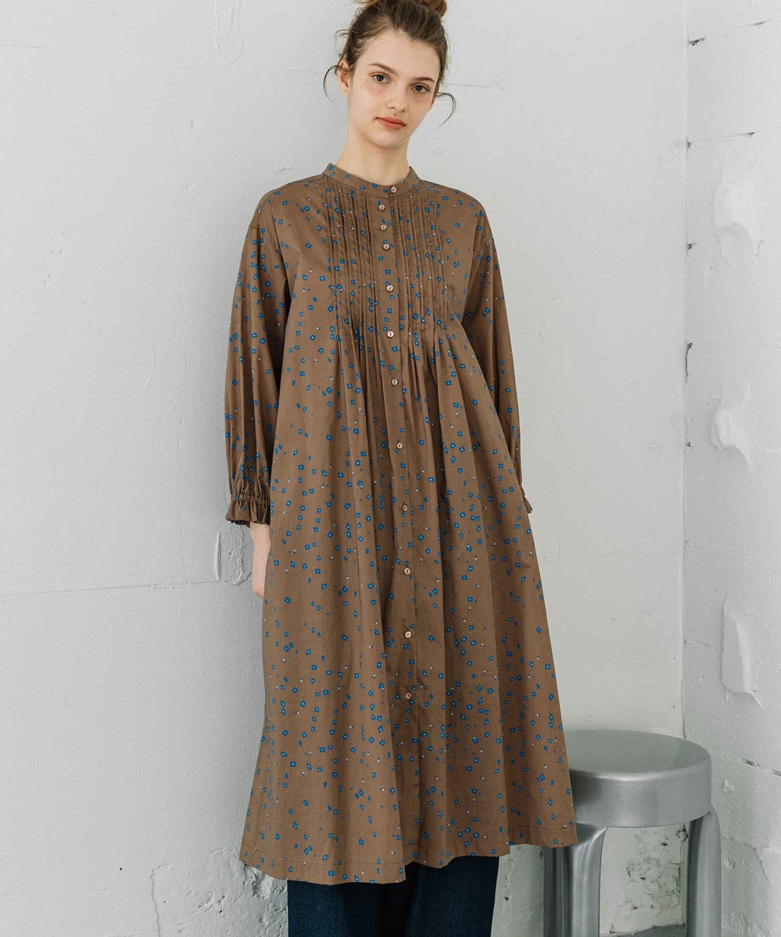 花柄とドットを散りばめたオリジナルのテキスタイルのワンピースです。