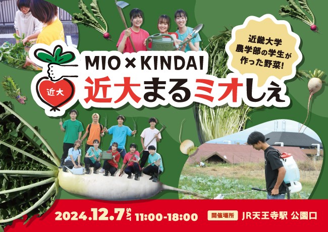 【日程】12月7日(土) 【時間】11:00~18:00(売り切れ次第終了) 【場所】JR天王寺駅 公園口 天王寺ミオ×近畿大学農学部GAVRi第12弾 学生が一生懸命育てた野菜を購入するチャンスです!! 売れ切れ次第終了ですので、お早めにお買い求めくださいませ 皆さまのご来場お待ちしております。 ※お支払いは現金のみ。ミオクラブポイントも付きません。