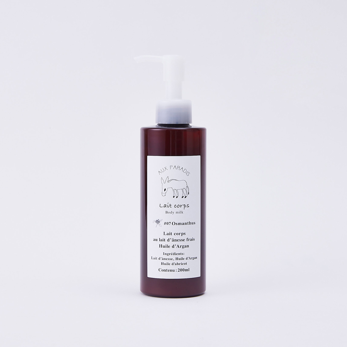 保湿力の高いアルガンオイルやロバのミルクを配合したボディミルクは、やさしい金木犀の香りが魅力。