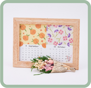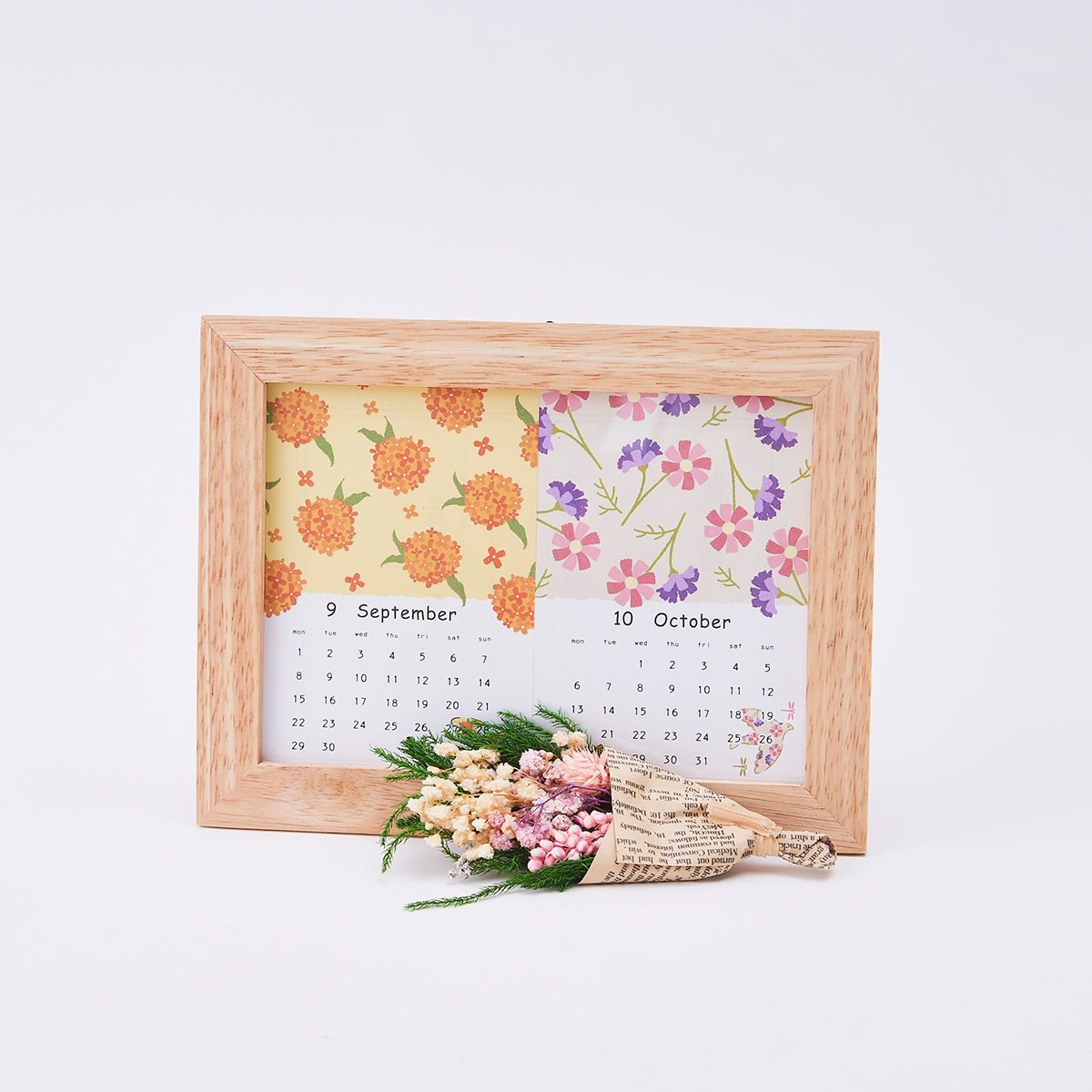 フレームやミニドライブーケと一緒に贈りたい、12種類のイラストが楽しめるオリジナルカレンダー。
