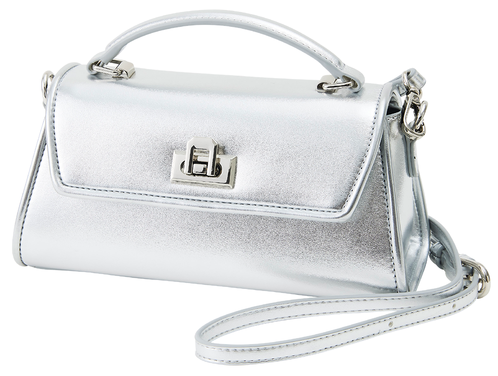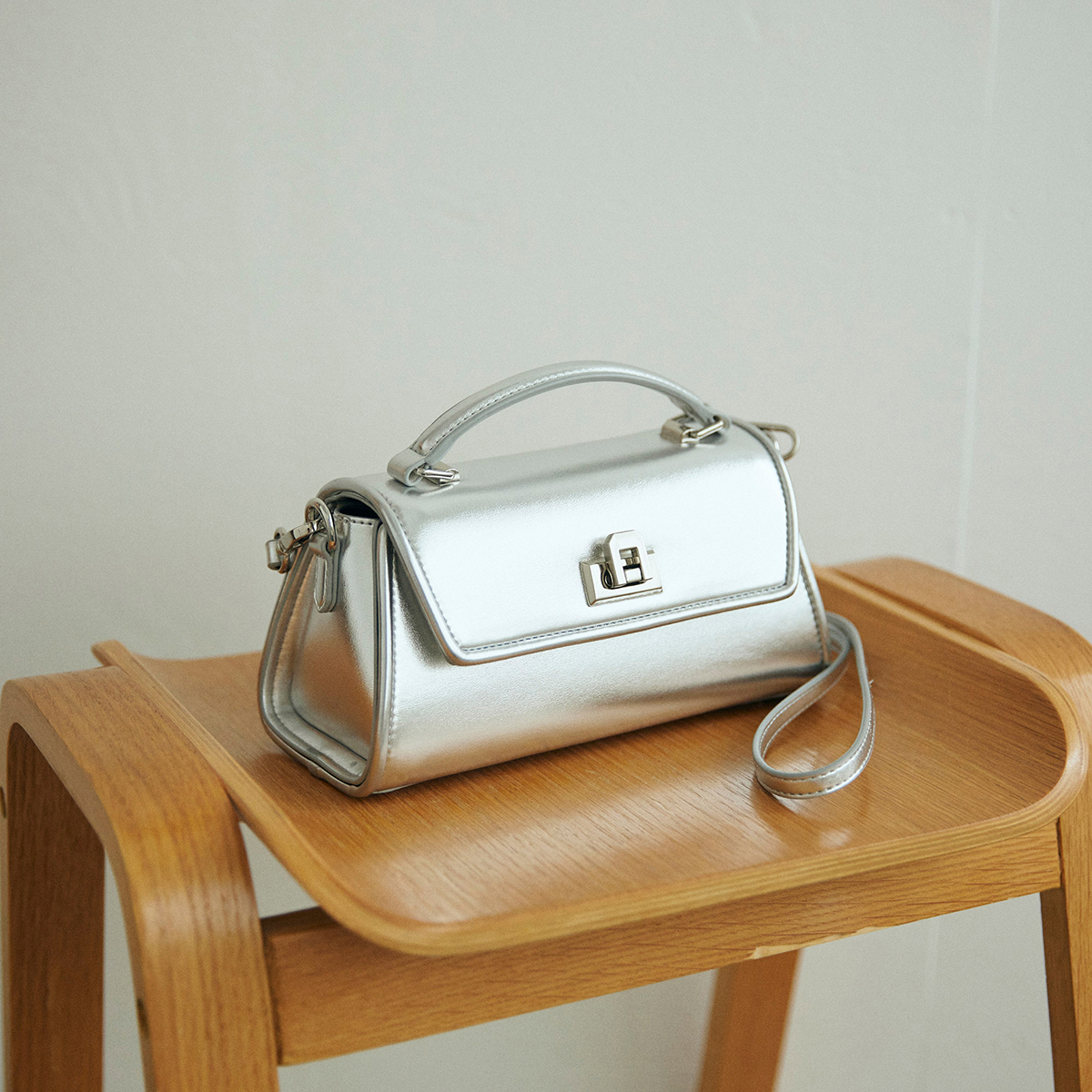 洗練された印象を加速させるスマートなシルエットのミニバッグは、シルバーの光沢がモードな空気感を演出。ショルダーストラップ付きの2WAY仕様。