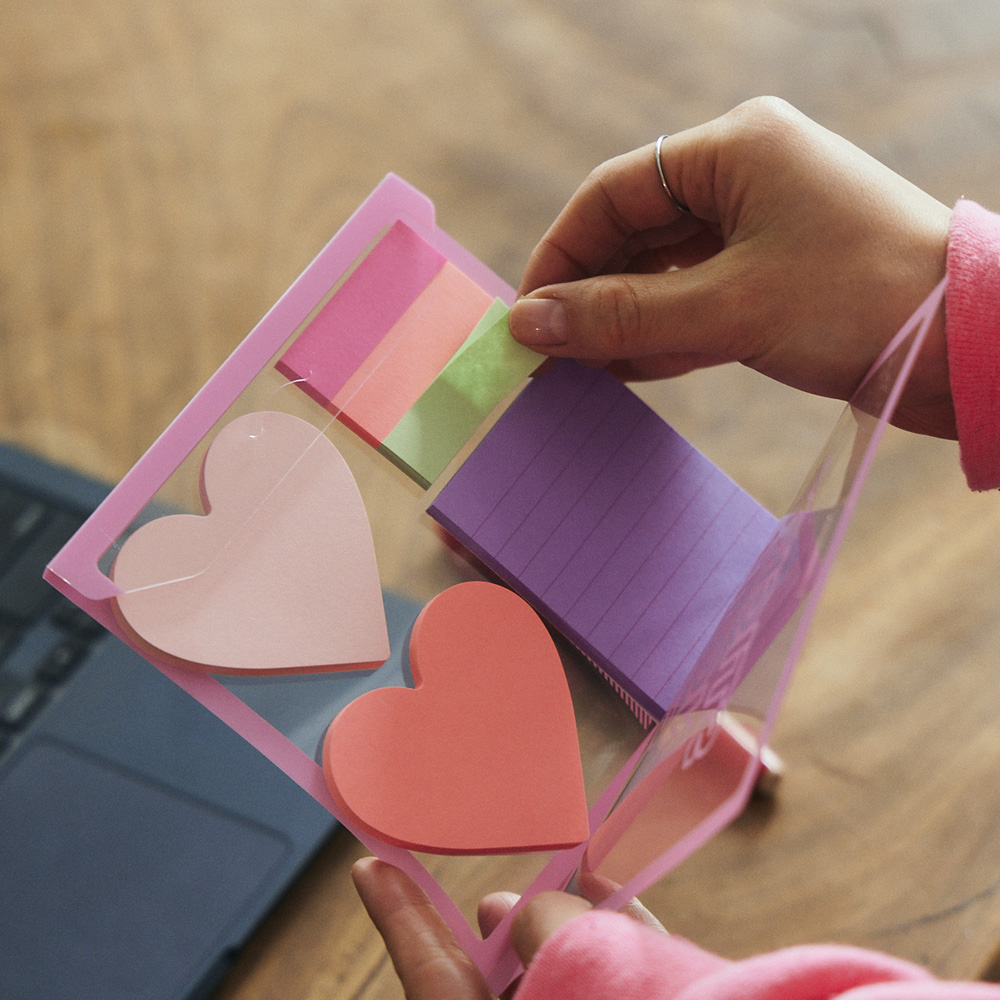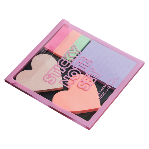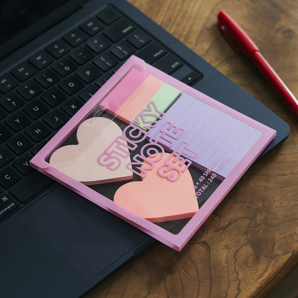ハート型や罫線入りのメモなど、6種類の色や形の付箋が計240枚も入ったセット。かわいい付箋を使って勉強や仕事のモチベをUP!